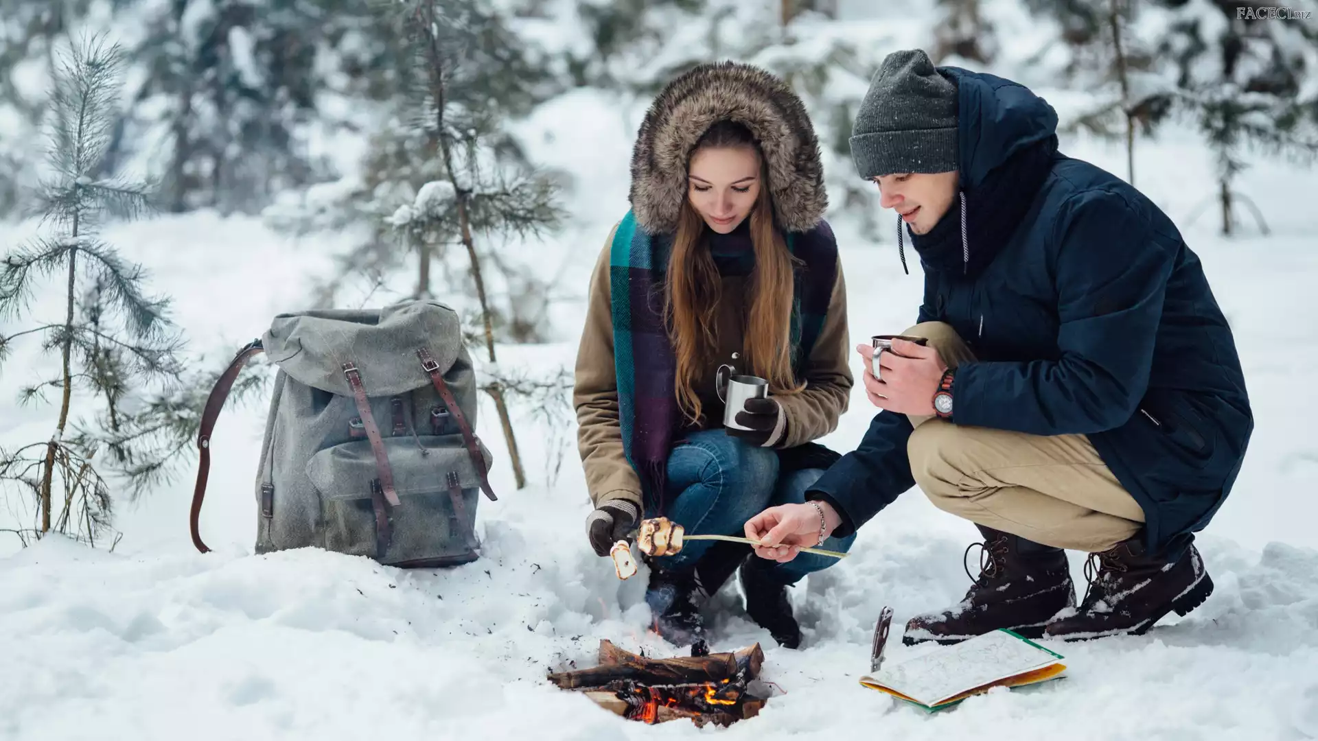 Ognisko, Zima, Kobieta, Para, Mężczyzna - faceci.biz
